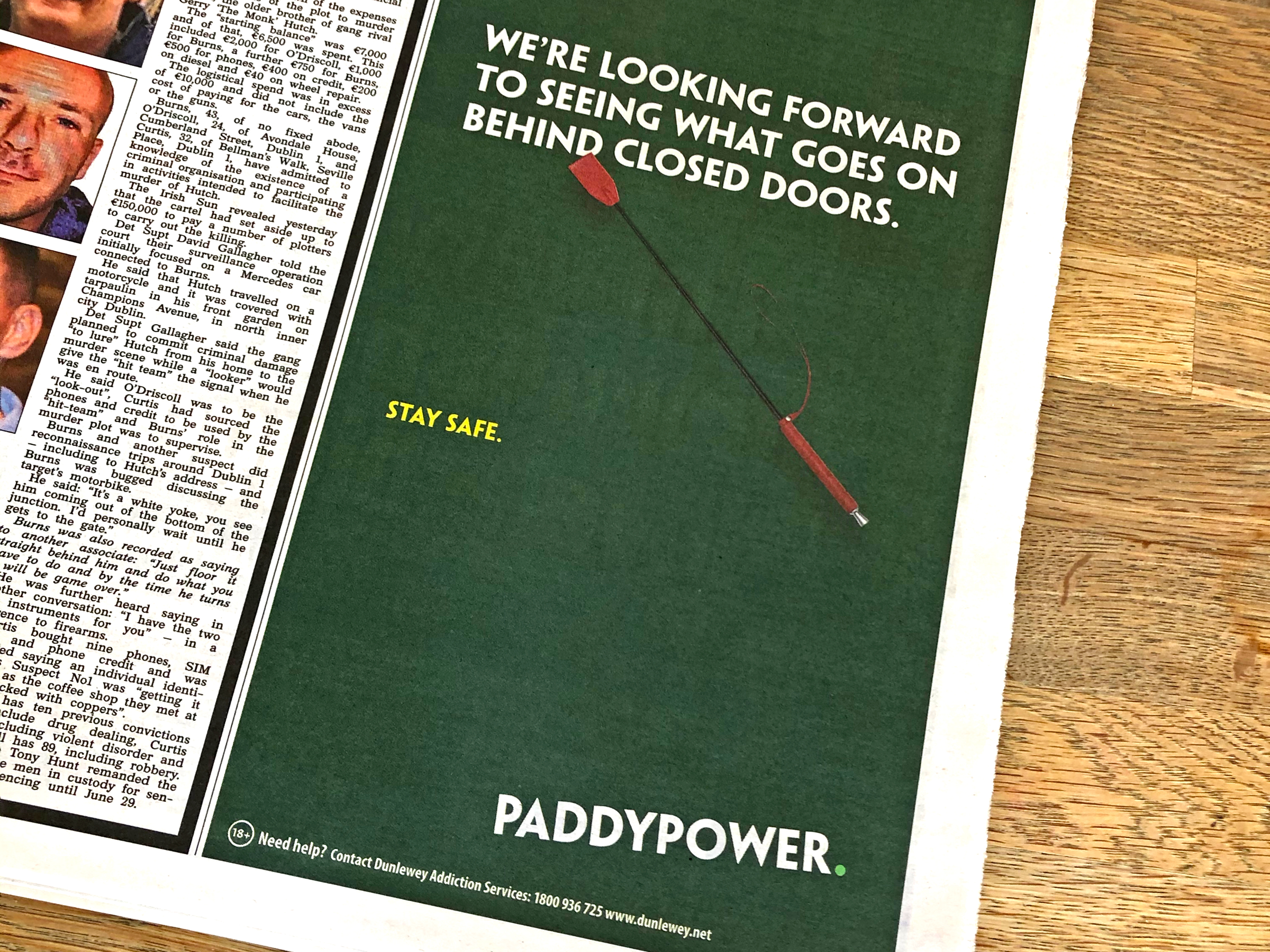 The Paddy Power brand is outstanding in its category, and among all great Irish brands, for engage its audience through razor sharp topical witty work. The opportunity for us as collaborators with the brand team is to capture a moment – cultural or sporting or both – and say the thing that’s on everyone’s minds while being absolutely the first to say it.